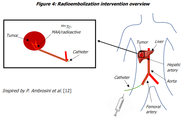The SIRT procedures are carried out by an interventional radiologist (IR) who places a catheter percutaneously via a patient’s femoral or radial artery and guides it to the hepatic artery (Figure 4).