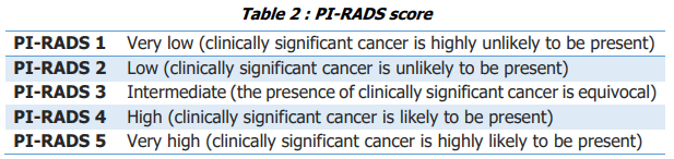 When assessing mpMRI, radiologists will attribute a score to each lesion to represent the relative cancer risk (Table 2). PI-RADS’s objective is therefore not to increase the detection rate but to characterize the lesions and identify those likely to affect the patient’s overall survival.